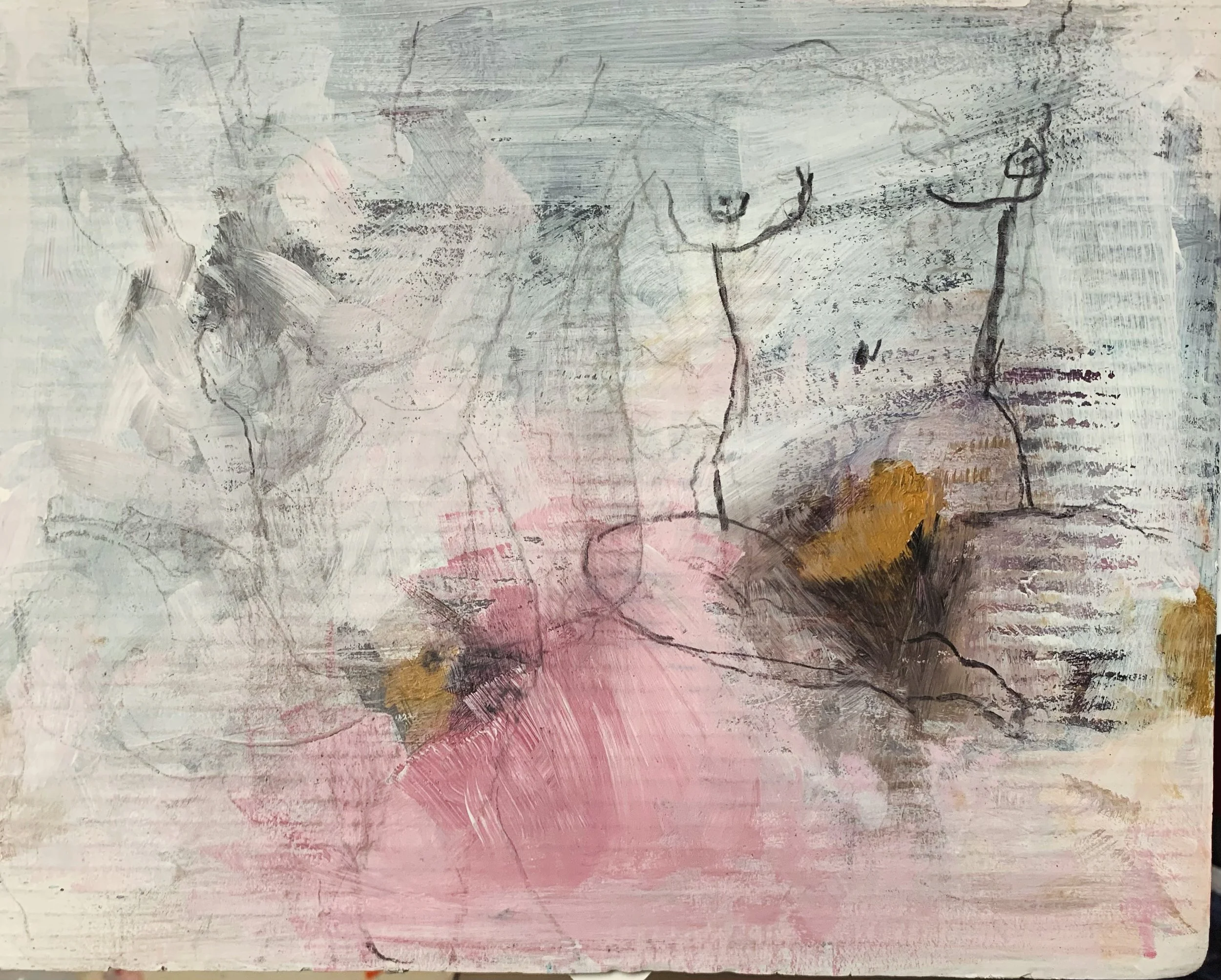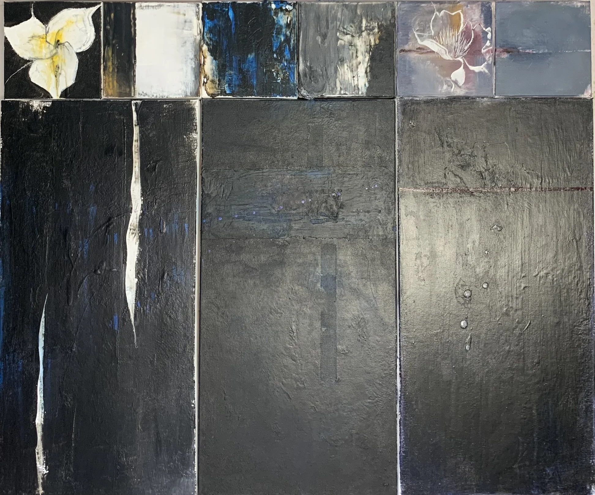 Mona Pollard is a visual artist with a preference for painting and drawing. Her early works were self-referential dependent on the female form. Challenging the linguistic code of the word feminine and women’s sexuality led to an exploration to reinvent the viewer’s perspective. Her investigation of the ambiguity of body representation was to include gendered spaces and societal conventions. Her approach utilizes descriptive marks noted as a woman’s touch, fragile and tentative, and temporal in nature. To transcend the very personal to a more universal representation, she distills the image into abstraction, felt but not necessarily seen. Recognition may or may not happen due to the degree of abstraction, allowing some perception to be tested. Currently working in acrylics, her application involves painting with gesso into drawn marks of charcoal, graphite or pastels, and drawing into wet paint. A significant point of departure, the process becomes more economical, alluding to a suppression of self. An intuitive journey that starts with familiar imagery becomes a system of panels and layering surface texture suggesting a deeper excavation of time. The implied grid and its rational order is supplanted with irrational emotive forces and the seductive medium of paint. Relying on these contradictions and reintroducing the figure in fragments, invites the viewer’s emotional connection and a continuum of the human experience.